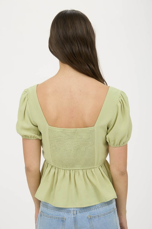FLUTTER SLV RUFFLE SMOCKED CHIFFON BLOUSE