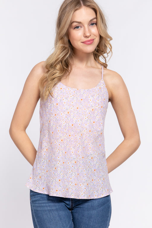 Active BasicFabric ContentFABRIC: PRINTED WOOL DOBBY100% POLYESTER DescriptionROUND NECK RACER BACK FLORAL PRINTED WOVEN CAMI TOP