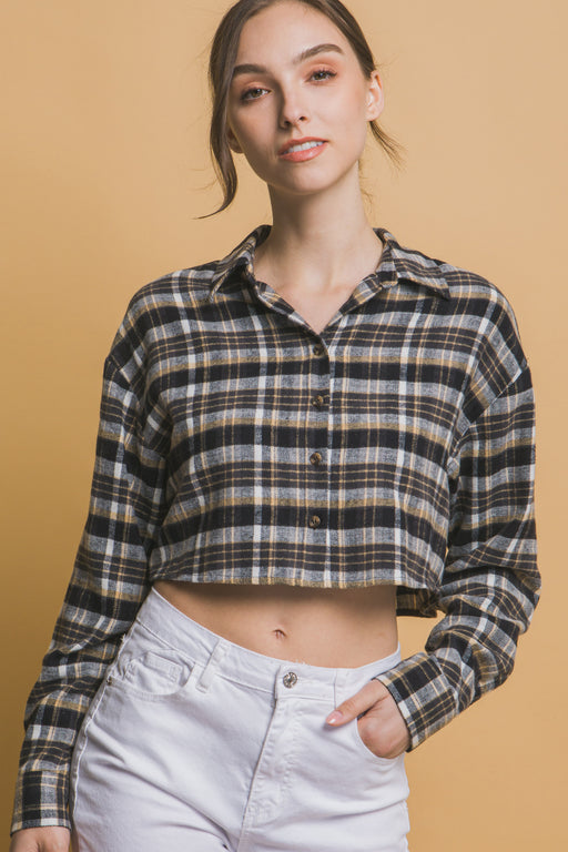 Cropped Plaid Print Button Down Shirt